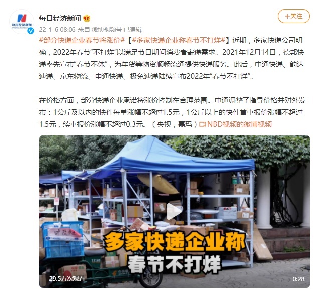 看完这篇文章之后,你是不是同样也消除了春节期间不能够收寄快递的那种疑虑?今年过年的时候,你计划网购一些什么样的年货,又或者是要给亲友寄出去什么样特别的礼物?欢迎在评论区那里留言并分享,顺便给辛苦坚守岗位的快递小哥点个赞!